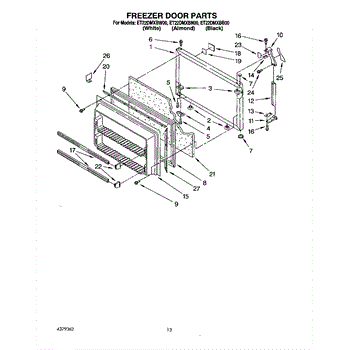 This freezer door gasket seals the door to the cabinet to keep cold air in and humid air out. Replacing a worn gasket restores a proper seal, helping maintain temperature and reducing frost and condensation around the door.
