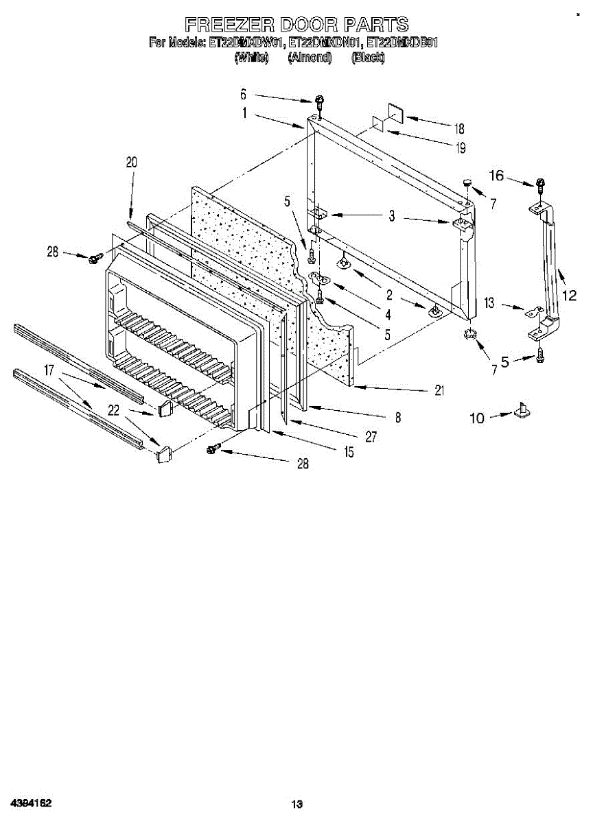 Parts for Whirlpool ET22DMXDW01: 08 - Freezer Door, Lit / Optional Parts