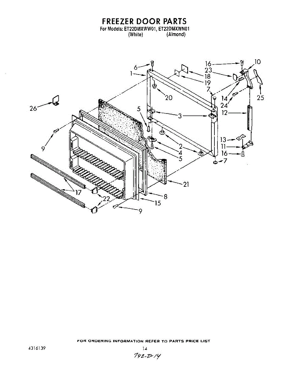 Parts for Whirlpool ET22DMXWW01: 09 - Freezer Door Parts
