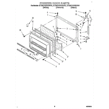 This freezer door gasket seals the door to the cabinet to keep cold air in and humid air out. Replacing a worn gasket restores a proper seal, helping maintain temperature and reducing frost and condensation around the door.