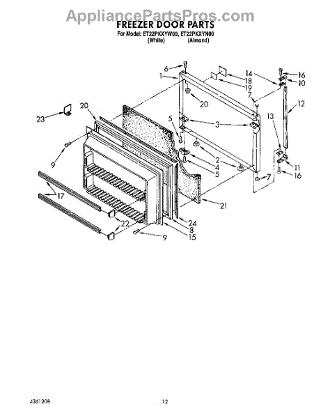 Parts for Whirlpool ET22PKXYN00: 08 - Freezer Door Parts