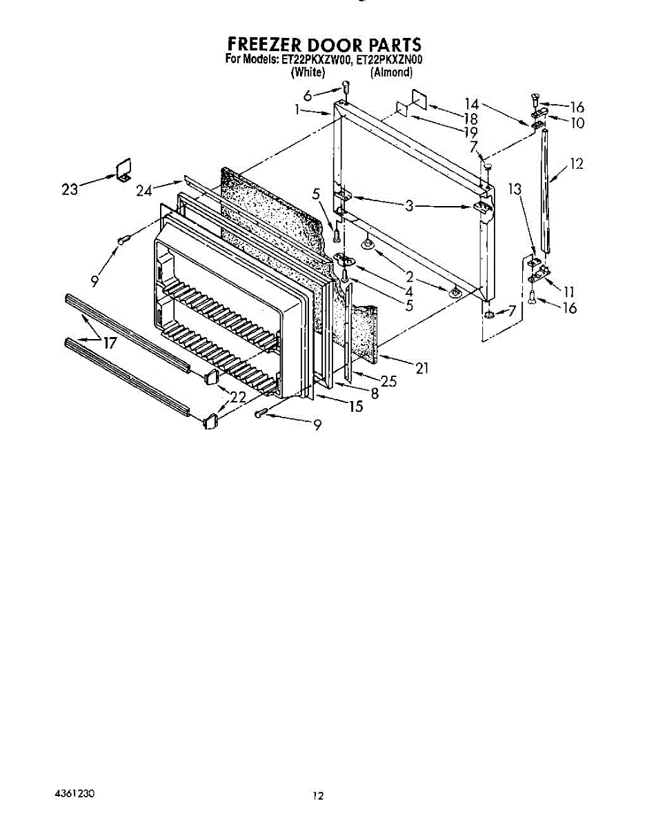Parts for Whirlpool ET22PKXZN00: 08 - Freezer Door Parts