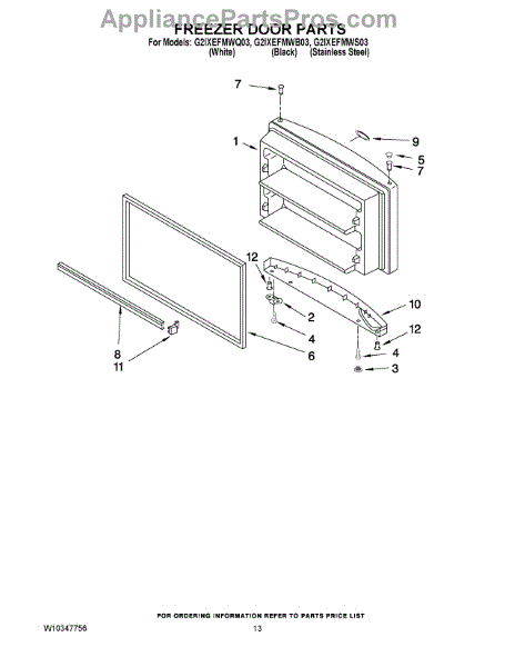 Parts for Whirlpool G2IXEFMWB03: 07 - Freezer Door Parts
