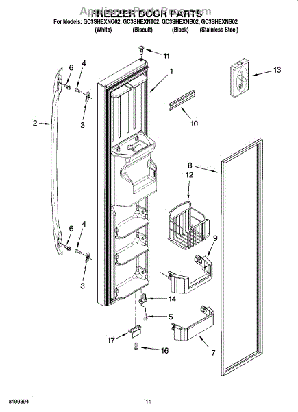 Parts for Whirlpool GC3SHEXNB02: 07 - Freezer Door Parts