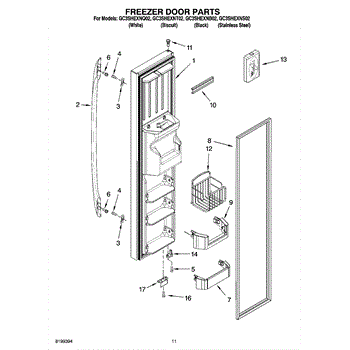 Parts for Whirlpool GC3SHEXNT02: 07 - Freezer Door Parts
