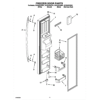 Parts for Whirlpool GC5SHEXNB01: 07 - Freezer Door Parts