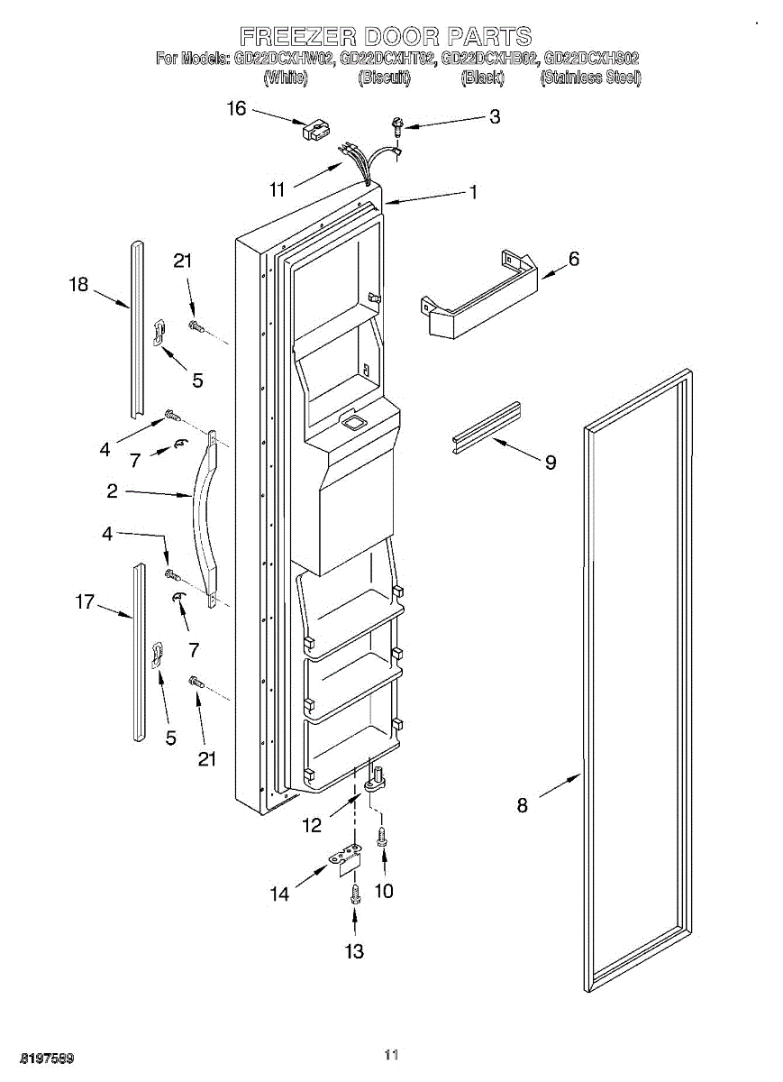 Seals your refrigerator freezer door to prevent air leaks and maintain temperature. Replace if door pops open, feels loose, or shows visible damage.