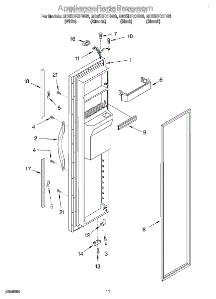 Parts for Whirlpool GD25DFXFB03: 07 - Freezer Door Parts