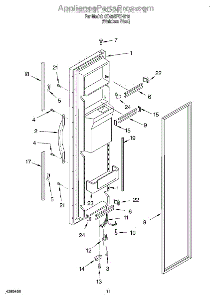 Parts for Whirlpool GD25SFCHS10: 07 - Freezer Door Parts
