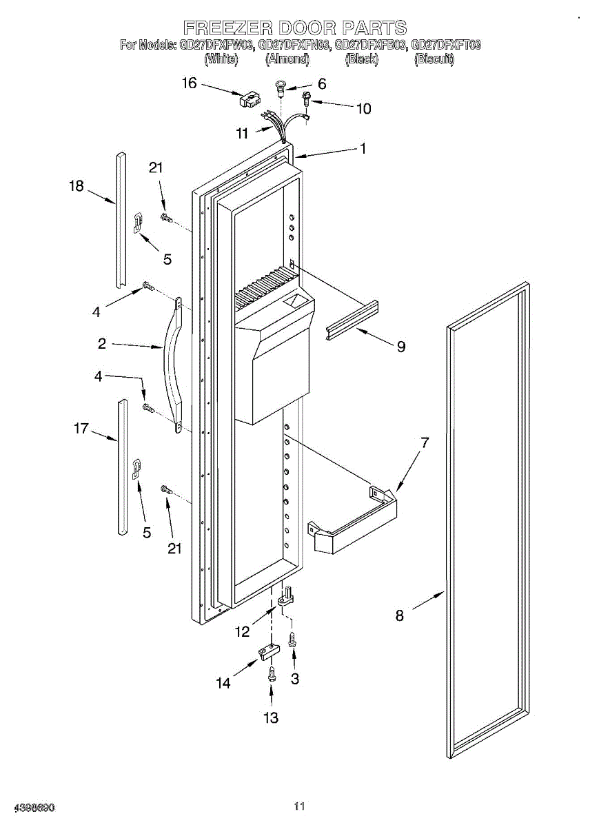 White. For almond order 2186649N. For black order WP2186649B.