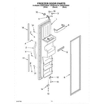 Parts for Whirlpool GD2SHAXKB01: 07 - Freezer Door Parts