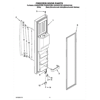 Parts for Whirlpool GD5DHAXVQ00: 07 - Freezer Door Parts