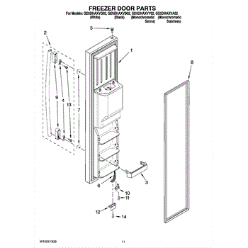 Parts for Whirlpool GD5DHAXVQ02: 07 - Freezer Door Parts