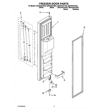 Parts for Whirlpool GD5DHAXVQ03: 07 - Freezer Door Parts
