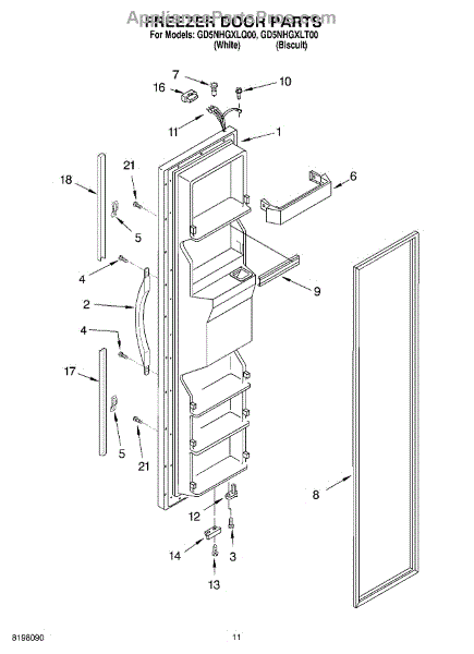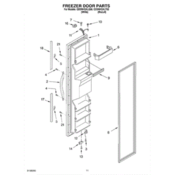 The Freezer Door Gasket is an OEM replacement part for Whirlpool refrigerators. It creates a tight insulating seal around the perimeter of the freezer door opening. The gasket helps maintain consistent sub-freezing temperatures inside by preventing cold air loss. Causes relate to natural compression fatigue over time, cracks developing with use, or accidental slicing/tears from sharp edges within the freezer. Symptoms of a compromised gasket include: