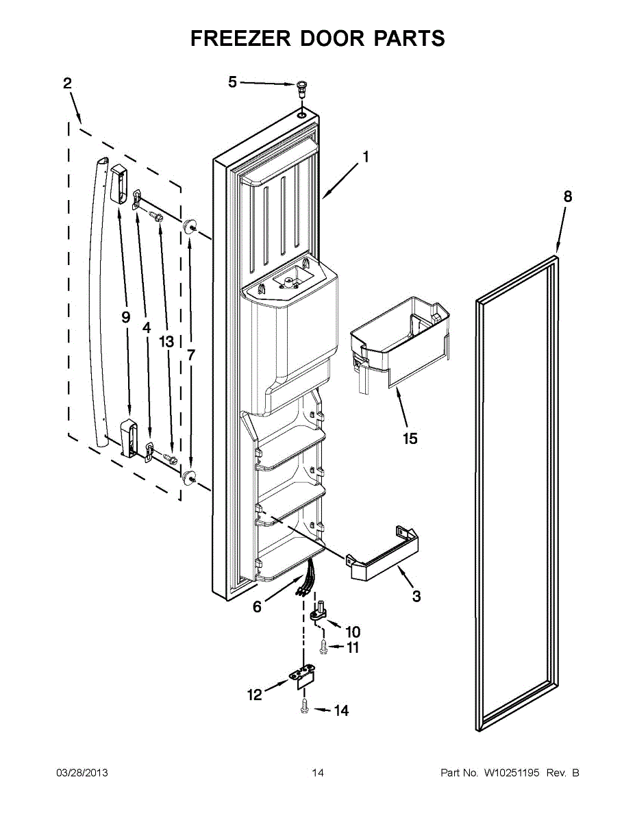 The Freezer Door Gasket is an OEM replacement part for Whirlpool refrigerators. It creates a tight insulating seal around the perimeter of the freezer door opening. The gasket helps maintain consistent sub-freezing temperatures inside by preventing cold air loss. Causes relate to natural compression fatigue over time, cracks developing with use, or accidental slicing/tears from sharp edges within the freezer. Symptoms of a compromised gasket include: