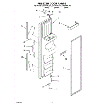 Parts for Whirlpool GD5SHAXLB02: 07 - Freezer Door Parts
