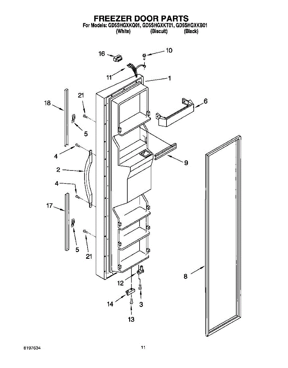 Parts for Whirlpool GD5SHGXKT01: 07 - Freezer Door Parts