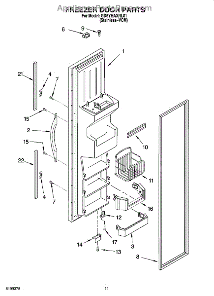 The Freezer Door Gasket is an OEM part for Whirlpool side-by-side and bottom-freezer refrigerators. As the seal that encloses cold air inside the freezer compartment, this gasket is critical for maintaining proper freezing temperatures.