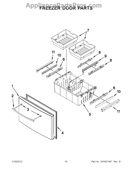 This replacement freezer bin restores a missing, cracked, or worn freezer storage drawer so you can keep frozen foods organized and contained. Fits behind the freezer door and rehabs normal shelf/drawer function. What it does: