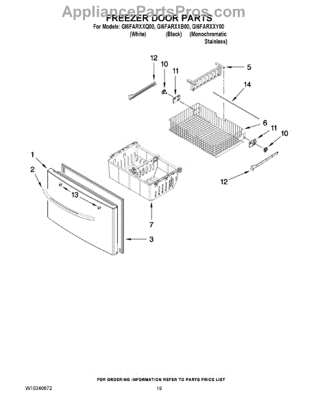 Parts for Whirlpool GI6FARXXQ00: 10 - Freezer Door Parts