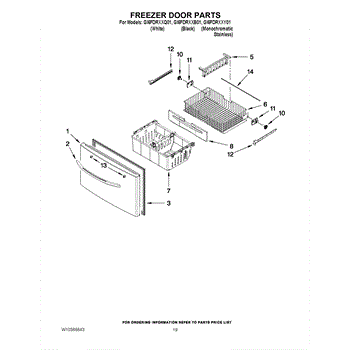 Parts for Whirlpool GI6FDRXXQ01: 10 - Freezer Door Parts