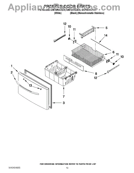 Parts for Whirlpool GI6FDRXXQ03: 10 - Freezer Door Parts