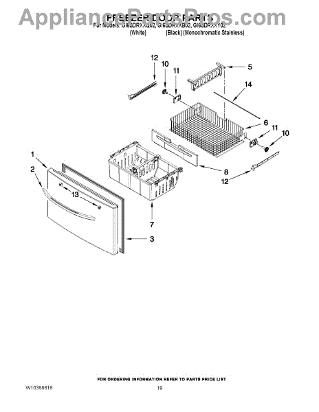Parts for Whirlpool GI6SDRXXY02: 10 - Freezer Door Parts
