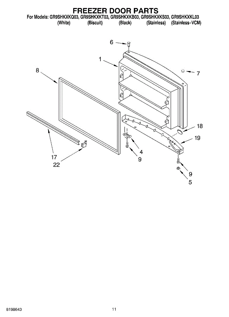 Parts for Whirlpool GR9SHKXKQ03: 06 - Freezer Door Parts, Optional Parts