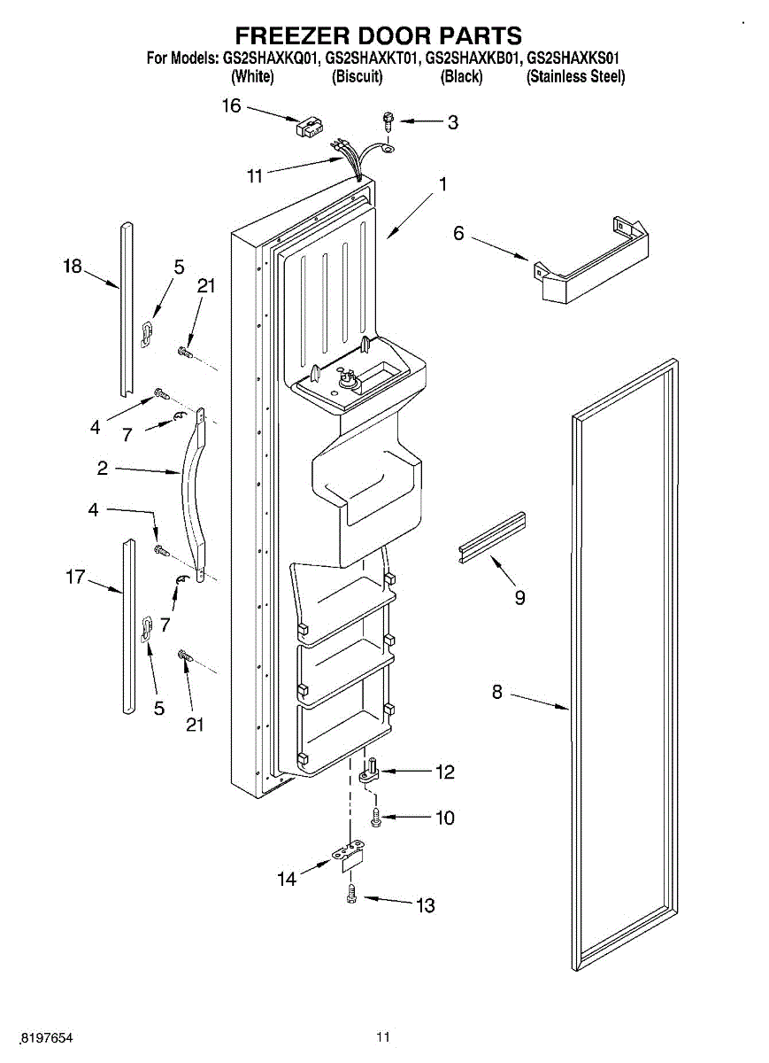 Parts for Whirlpool GS2SHAXKS01: 07 - Freezer Door Parts