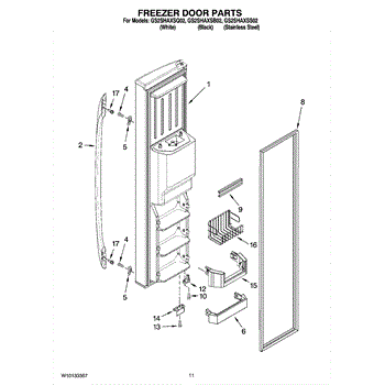Parts for Whirlpool GS2SHAXSB02: 07 - Freezer Door Parts