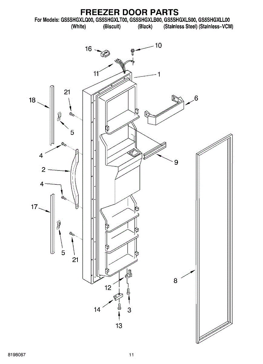 The Freezer Door Gasket is an OEM replacement part for Whirlpool refrigerators. It creates a tight insulating seal around the perimeter of the freezer door opening. The gasket helps maintain consistent sub-freezing temperatures inside by preventing cold air loss. Causes relate to natural compression fatigue over time, cracks developing with use, or accidental slicing/tears from sharp edges within the freezer. Symptoms of a compromised gasket include: