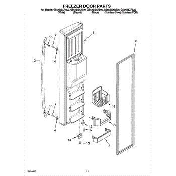 Mounts on the bottom of the freezer door.
