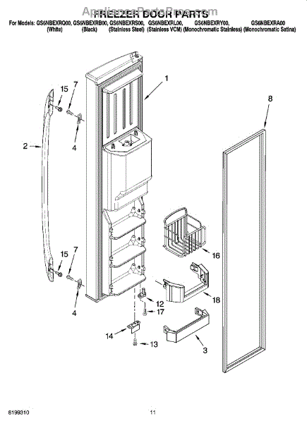 Parts for Whirlpool GS6NBEXRY00: 07 - Freezer Door Parts