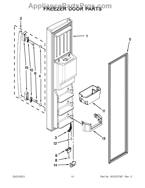 The Freezer Door Gasket is an OEM replacement part for Whirlpool refrigerators. It creates a tight insulating seal around the perimeter of the freezer door opening. The gasket helps maintain consistent sub-freezing temperatures inside by preventing cold air loss. Causes relate to natural compression fatigue over time, cracks developing with use, or accidental slicing/tears from sharp edges within the freezer. Symptoms of a compromised gasket include: