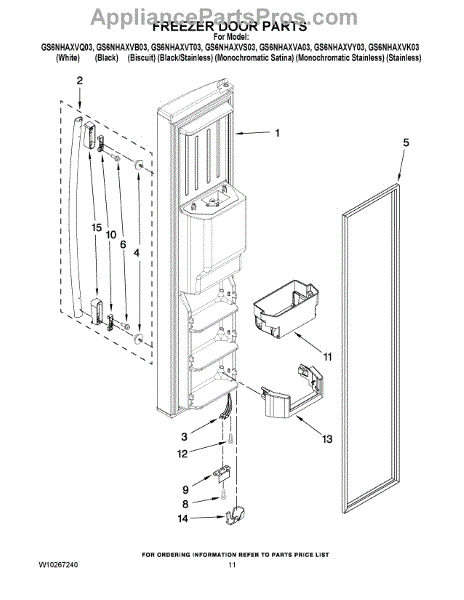 Parts for Whirlpool GS6NHAXVT03: 07 - Freezer Door Parts