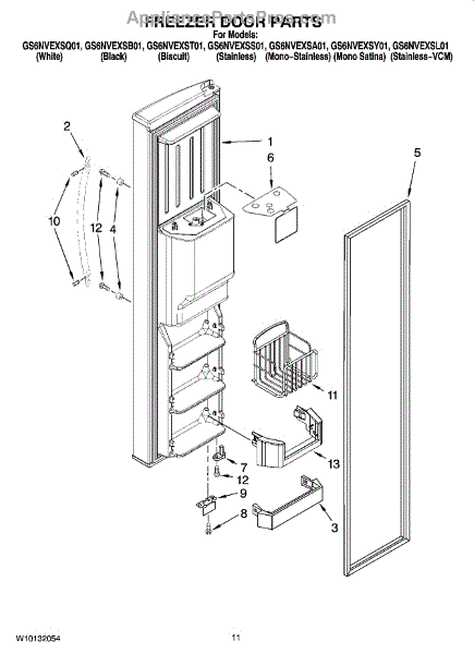 Parts for Whirlpool GS6NVEXSA01: 07 - Freezer Door Parts
