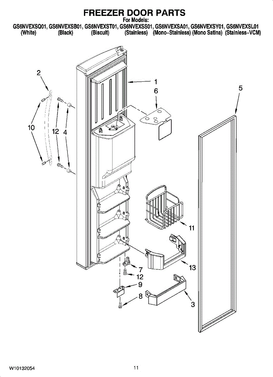 Parts for Whirlpool GS6NVEXSS01: 07 - Freezer Door Parts