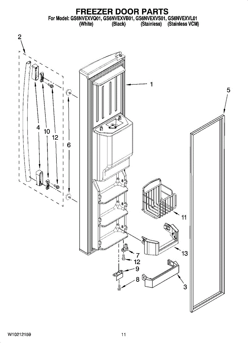 Mounts on the bottom of the freezer door.