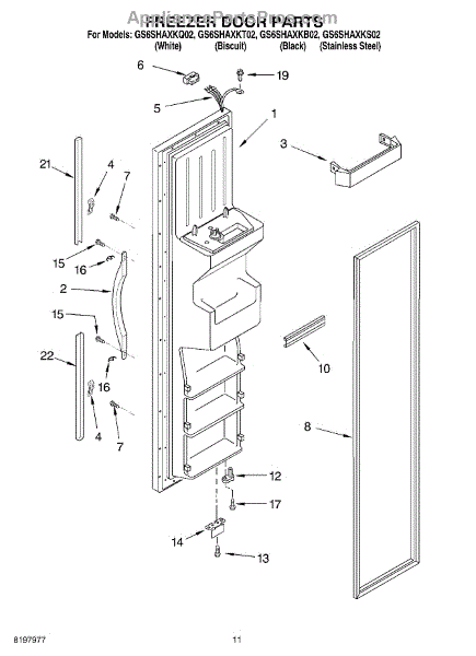 The Freezer Door Gasket is an OEM replacement part for Whirlpool refrigerators. It creates a tight insulating seal around the perimeter of the freezer door opening. The gasket helps maintain consistent sub-freezing temperatures inside by preventing cold air loss. Causes relate to natural compression fatigue over time, cracks developing with use, or accidental slicing/tears from sharp edges within the freezer. Symptoms of a compromised gasket include: