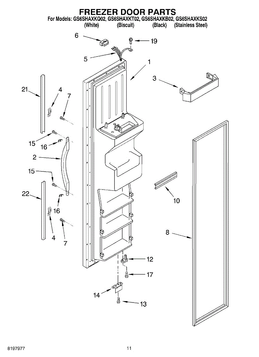 The Freezer Door Gasket is an OEM replacement part for Whirlpool refrigerators. It creates a tight insulating seal around the perimeter of the freezer door opening. The gasket helps maintain consistent sub-freezing temperatures inside by preventing cold air loss. Causes relate to natural compression fatigue over time, cracks developing with use, or accidental slicing/tears from sharp edges within the freezer. Symptoms of a compromised gasket include: