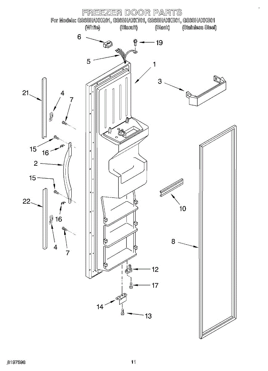 Parts for Whirlpool GS6SHAXKS01: 07 - Freezer Door Parts