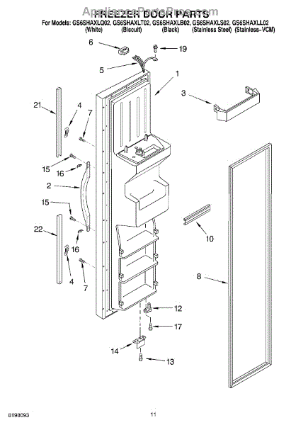 Parts for Whirlpool GS6SHAXLT02: 07 - Freezer Door Parts
