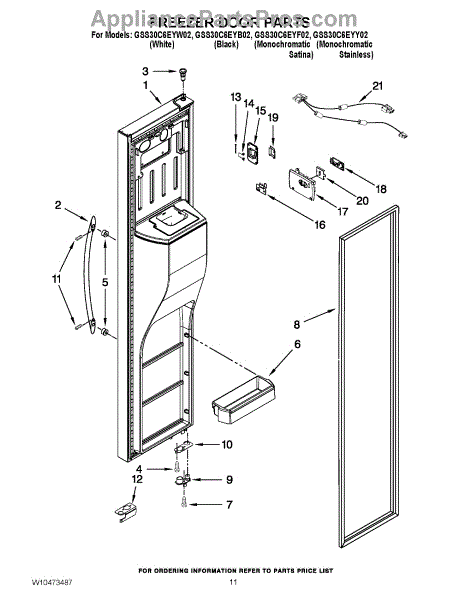 Parts for Whirlpool GSS30C6EYW02: 07 - Freezer Door Parts
