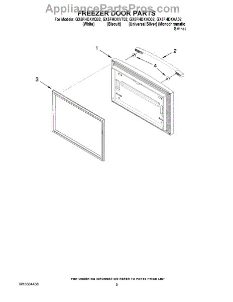 Parts for Whirlpool GX5FHDXVQ02: 03 - Freezer Door Parts