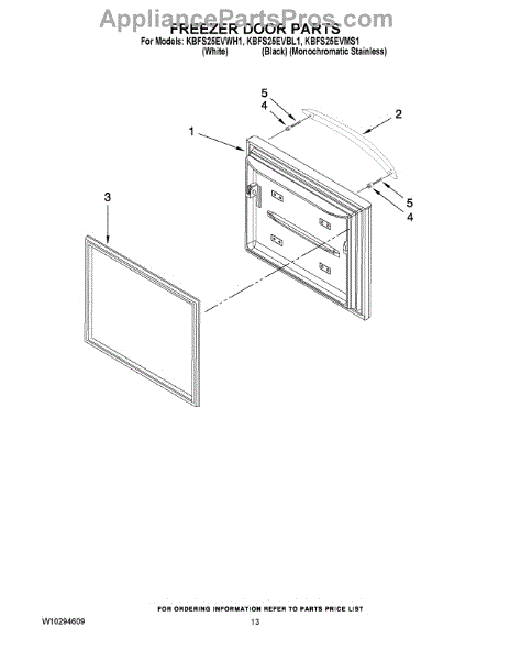 Parts for Kitchenaid KBFS25EVBL1: 07 - Freezer Door Parts