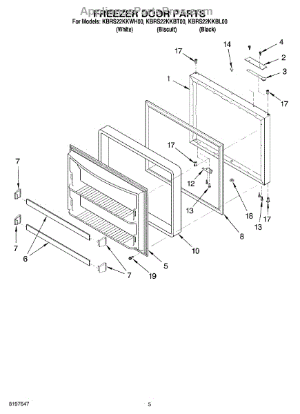 Parts for Kitchenaid KBRS22KKBT00: 03 - Freezer Door Parts