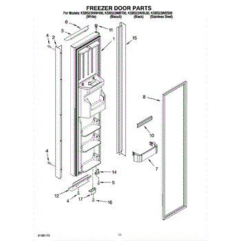 Mounts on the bottom of the freezer door to guide smooth opening and closing. Replace when cam is cracked, broken, or worn causing door misalignment.