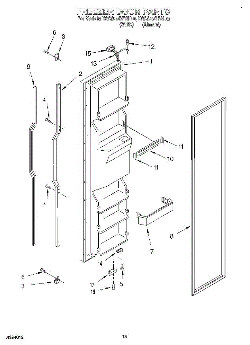 The Freezer Door Gasket is an OEM replacement part for Whirlpool refrigerators. It creates a tight insulating seal around the perimeter of the freezer door opening. The gasket helps maintain consistent sub-freezing temperatures inside by preventing cold air loss. Causes relate to natural compression fatigue over time, cracks developing with use, or accidental slicing/tears from sharp edges within the freezer. Symptoms of a compromised gasket include: