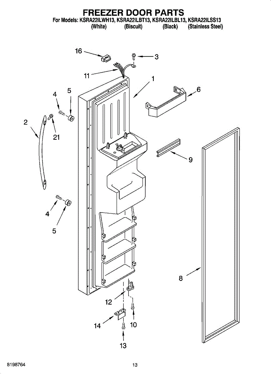Parts for Kitchenaid KSRA22ILSS13: 08 - Freezer Door Parts